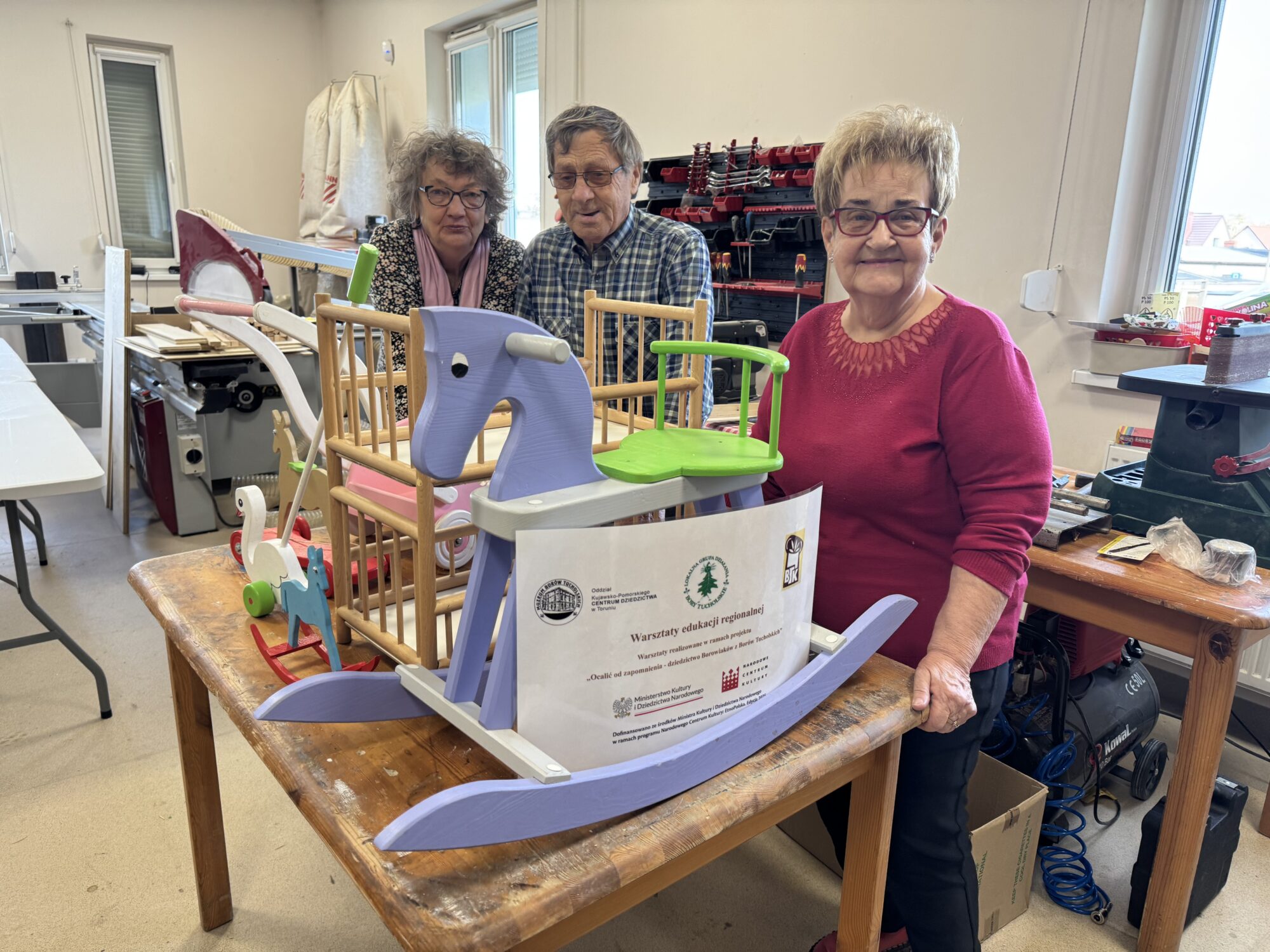 Dla przypomnienia podajemy, że w ramach edukacji regionalnej odbyły się 9-cio godzinne warsztaty z haftu, które poprowadziła Anna Przytarska i Halina Sala, warsztaty z malowania na szkle, które nadzorował Zygmunt Kędzierski, warsztaty plecionkarskie z Hanną Behrendt oraz warsztaty zabawkarskie prowadzone przez Andrzeja i Krystynę Mięsikowskich.