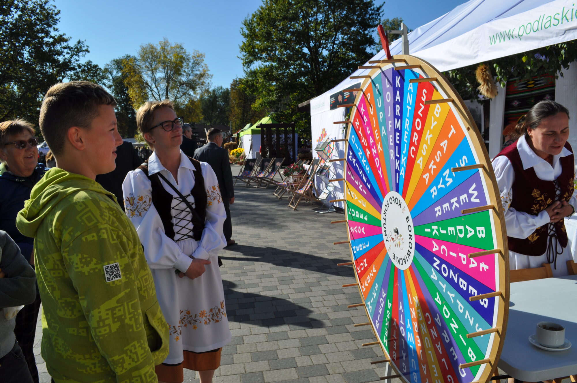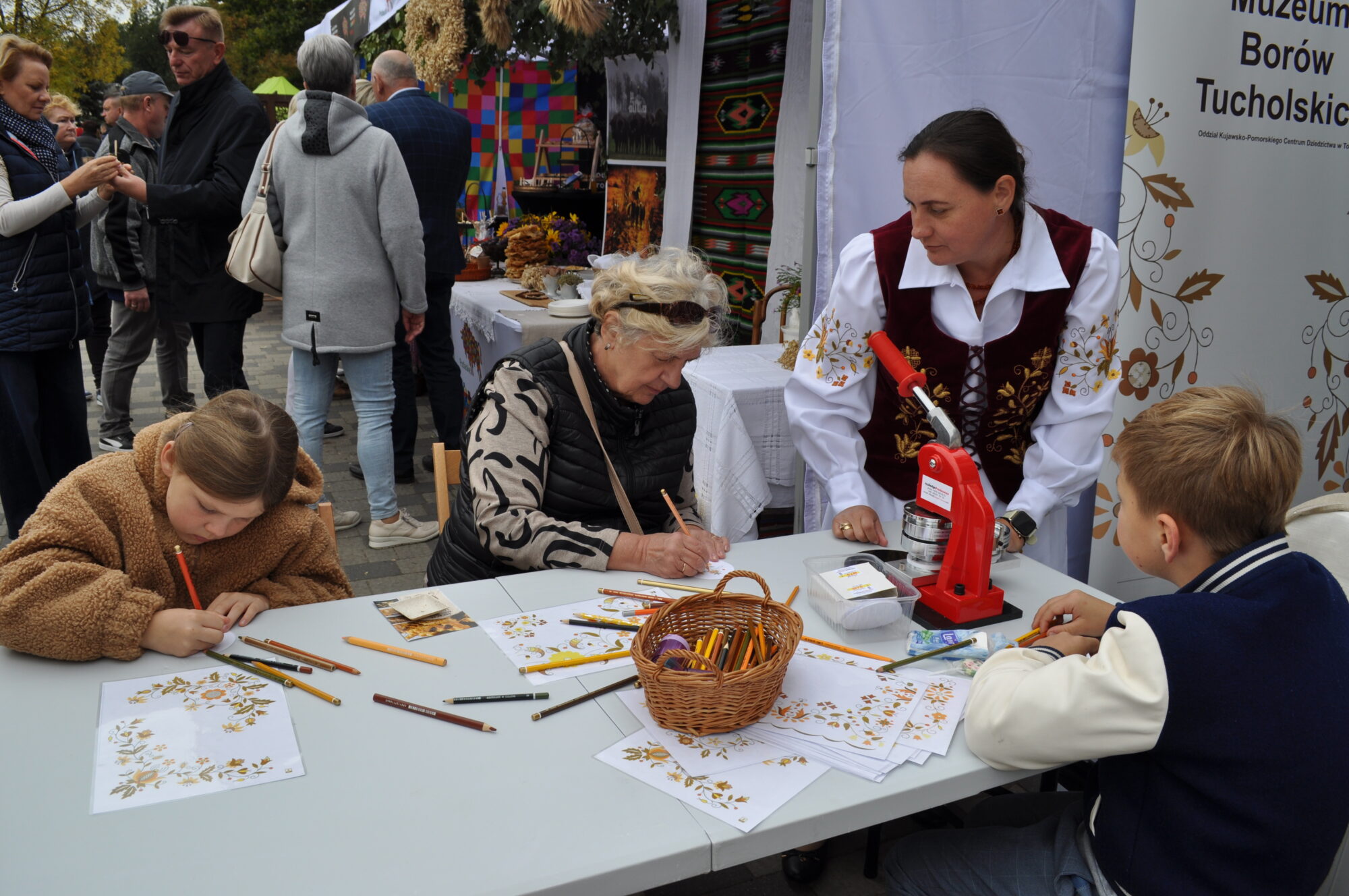Zawieźliśmy do Spały rękodzieło naszych twórców ludowych. Proponowaliśmy wykonanie własnoręcznie przypinki z motywem haftu oraz zabawy gwarowe przy kole fortuny. Promowaliśmy przy tym także Powiat Tucholski oraz gminę Tuchola.